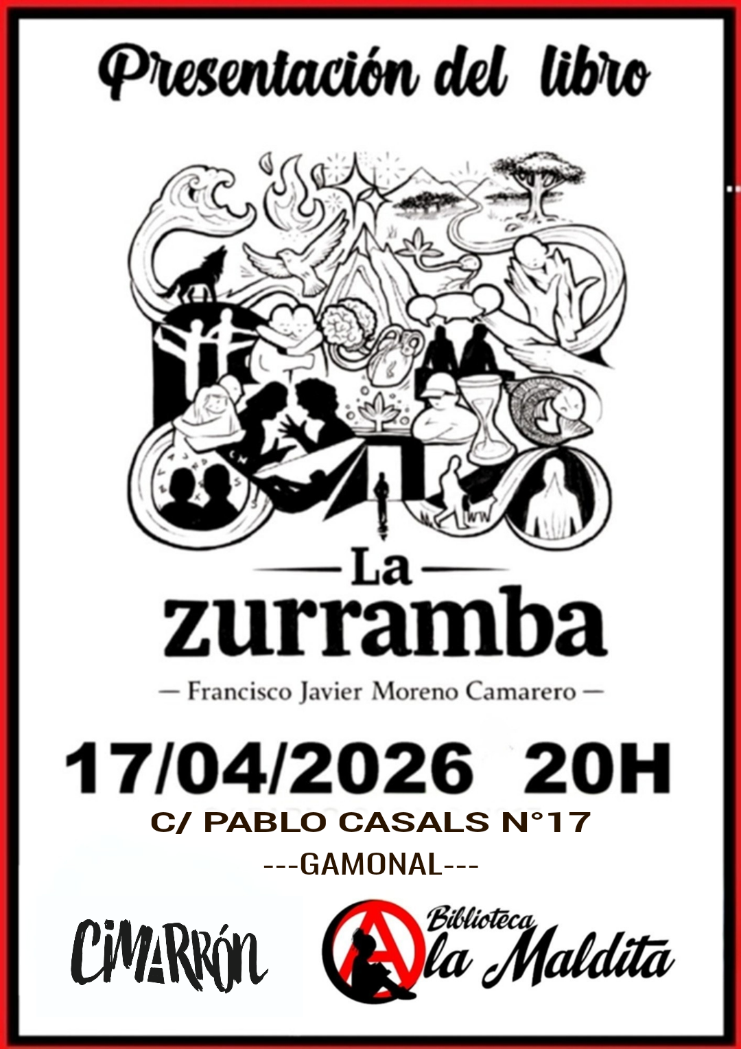 El próximo viernes 17 de abril la Biblioteca La Maldita dará cobijo a la presentación de La Zurramba, un poemario ilustrado que ve la luz gracias al proyecto editorial Cimarrón y que persigue parar, respirar y volver a lo importante. La presentación dará comienzo a partir de las 20:00 horas y correrá a cargo del autor de la obra. Como de costumbre, la entrada en la Biblioteca La Maldita, ubicada en el número 17 de la calle Pablo Casals de Gamonal, es libre y gratuita hasta completar el aforo.
